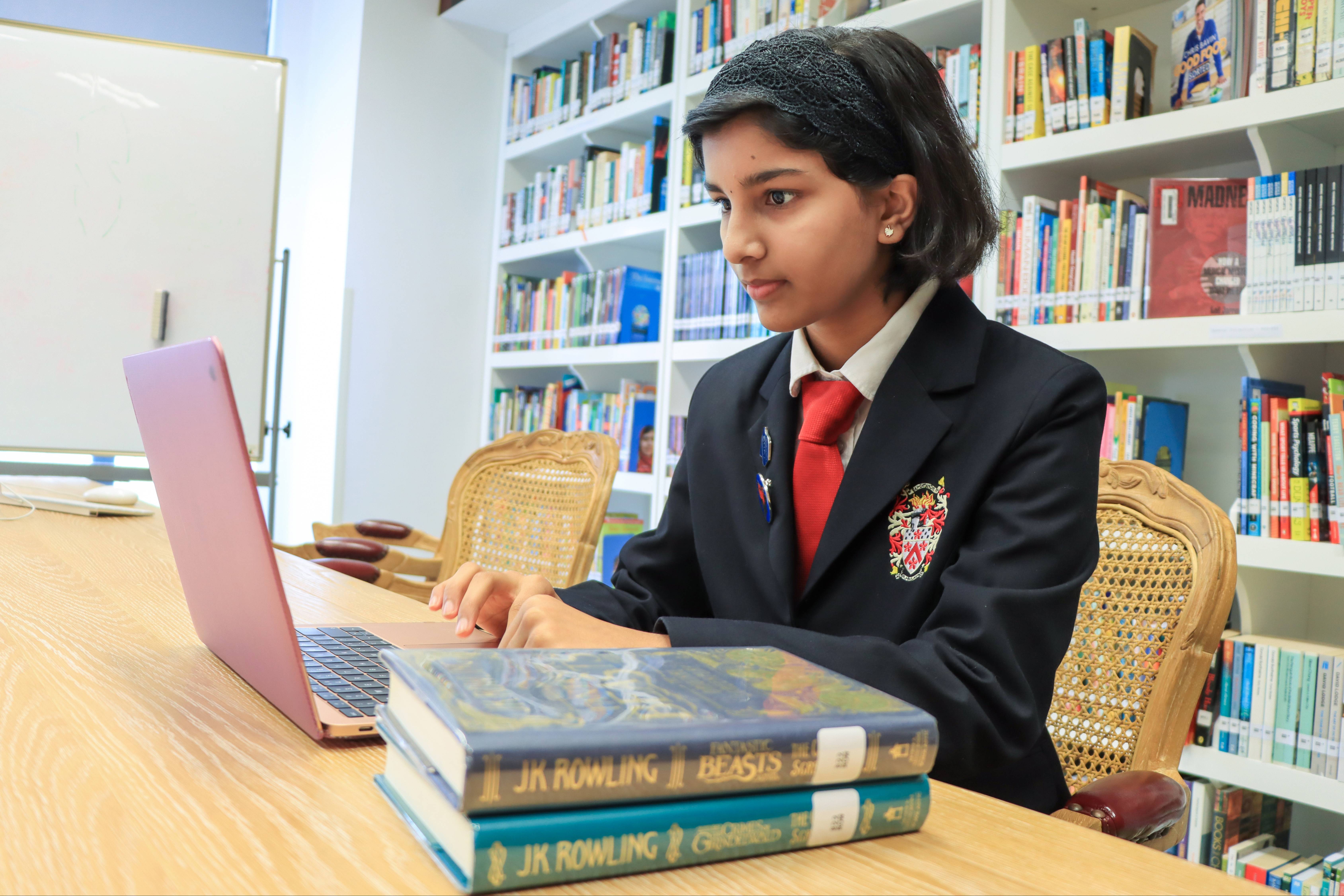 我是市场和传讯实习生。这是今年新推出的一个学生领导职位。我将撰写有关学校和活动的报道。并在重要活动中代表学校形象。例如,今年我曾在荣军纪念日集会和排灯节集会上发言。在荣军纪念日集会上,我谈到了第二次世界大战中妇女和护士的贡献,这让我觉得非常荣幸。在排灯节上,作为学校唯一的印度学生,我借此机会讲述了排灯节对我的意义,并与学校社区分享了关于排灯节的传统和缘由。这对我来说是非常有意义的。
